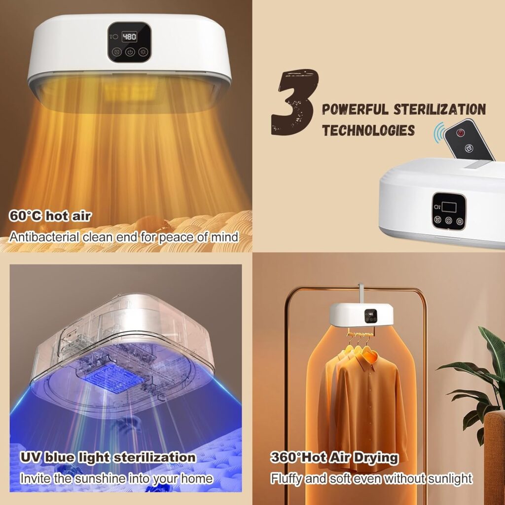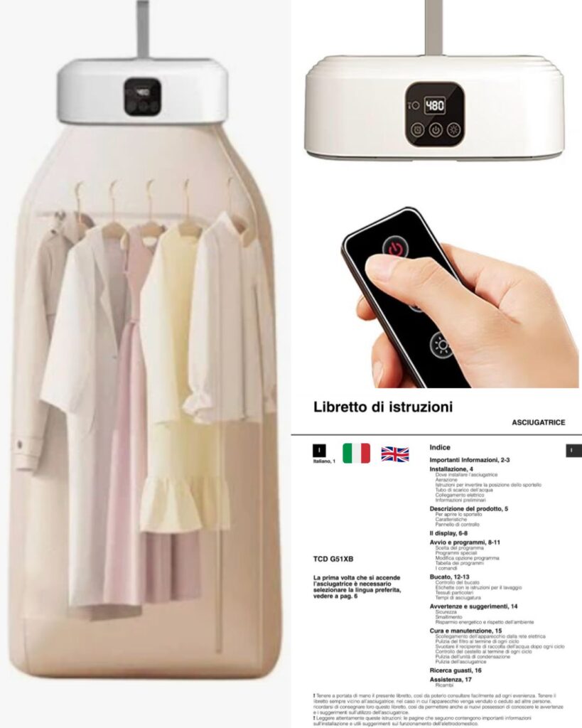 Pieghevole e multifunzionale. La temperatura è controllata tra i 50° e i 70°. Asciuga tramite raggi UV e calore qualsiasi indumento senza rovinarlo. Veloce da installare e facilmente trasportabile.