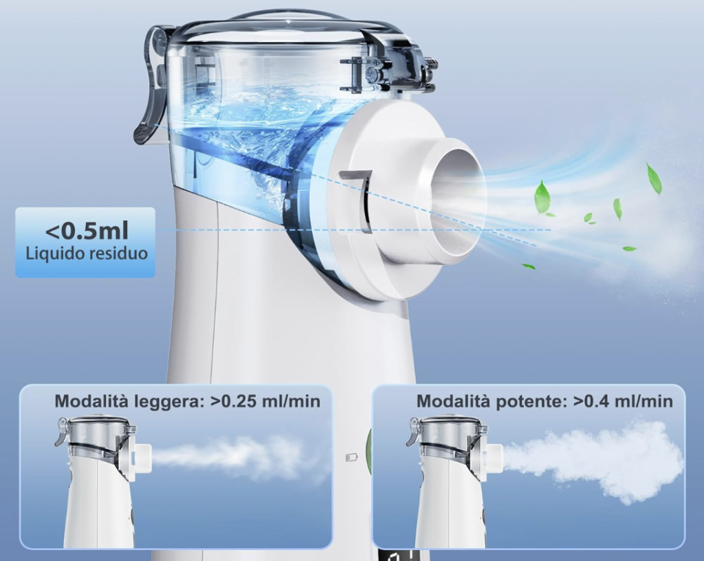 Emette una nuvola soffice lavorando a freddo mantenendo il principio attivo senza nessuna sensazione di soffocamento, ideale anche per bambini.